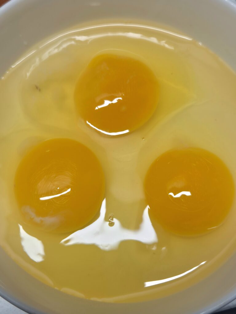 우선 계란 3개를 넣어주세요.